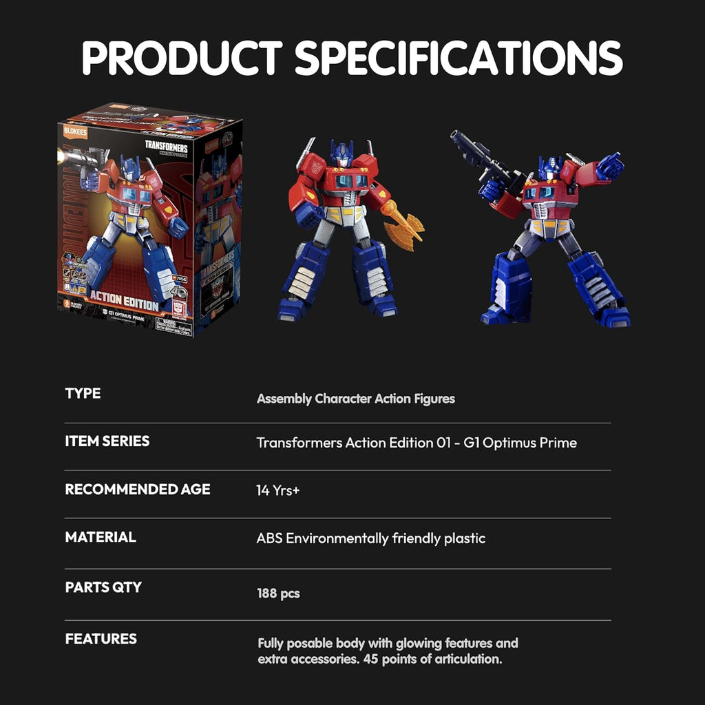 Unleash the power of the Transformers G1 Optimus Prime Blokees Action Edition Model Kit, a Previews Exclusive designed for collectors and enthusiasts alike. This meticulously detailed model kit brings the iconic leader of the Autobots to life with high-quality parts that ensure ease of assembly and display. Perfectly suited for both seasoned builders and newcomers, this Action Figures category standout will elevate any collection with its authentic design and striking attention to detail.