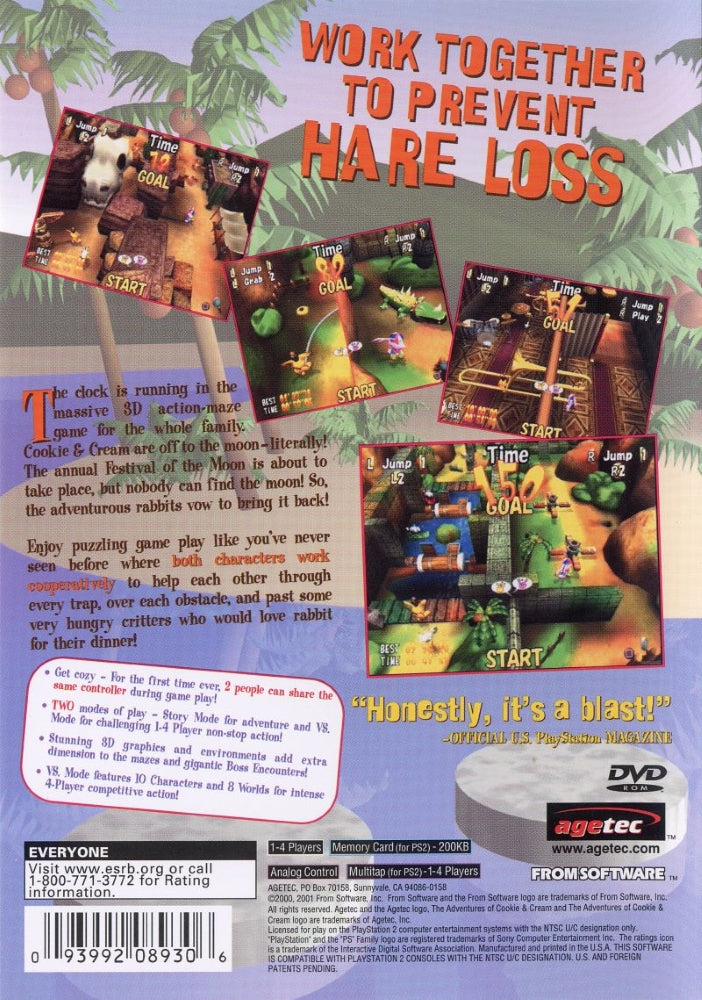 Experience seamless multiplayer co-op play, where effective communication and collaboration are key to overcoming the game's innovative split-screen format. "The Adventures of Cookie & Cream" not only offers a visually appealing and immersive adventure but also encourages players to strengthen their teamwork and coordination. Ideal for gamers of all ages, this PS2 gem stands out with its charming art style and engaging gameplay mechanics. Explore this timeless classic today and embark on a thrilling journey packed with unforgettable moments and endless entertainment.