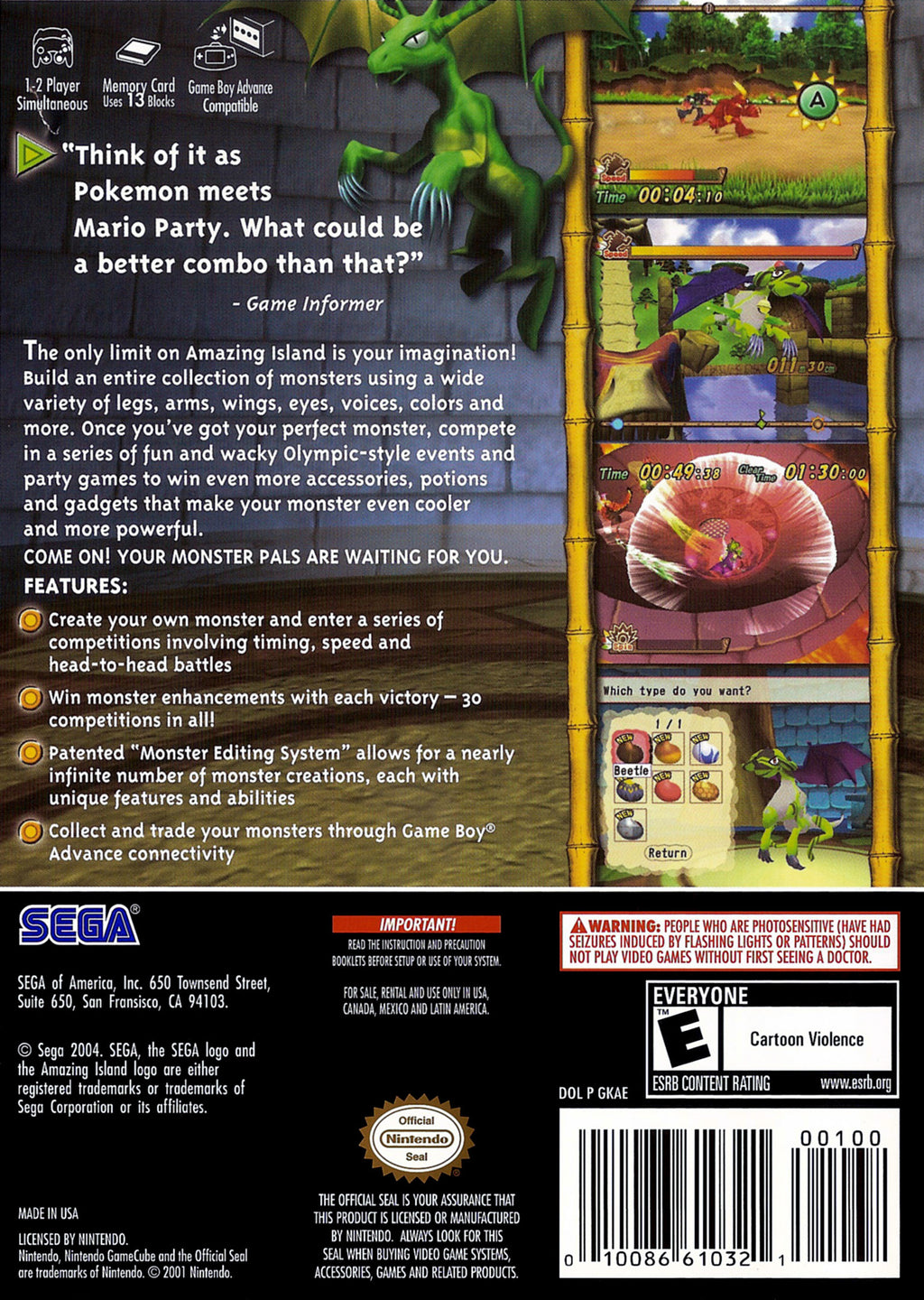 Discover the captivating adventure that awaits with "Amazing Island" for the Nintendo GameCube, a unique blend of creativity and exploration that will ignite the imaginations of players of all ages. Immerse yourself in a magical world where you can design and customize your own creatures, offering endless possibilities for personalization and strategic gameplay. This family-friendly game challenges players to overcome a series of thrilling mini-games and puzzles, each designed to engage and entertain with its vibrant graphics and innovative mechanics.