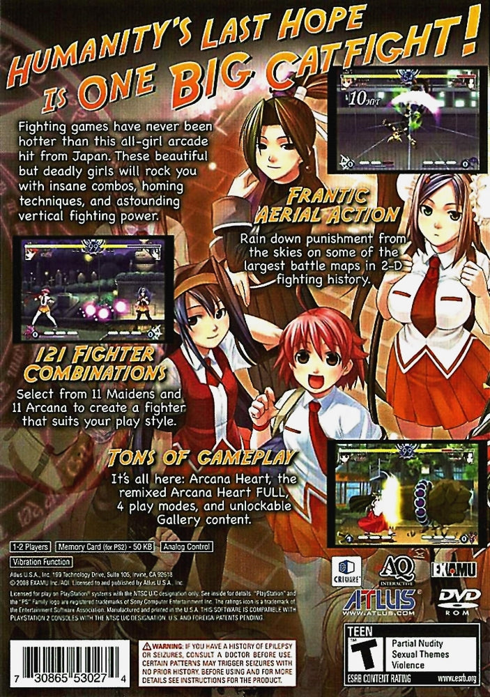 Discover the exhilarating world of Arcana Heart for PS2, a captivating 2D fighting game that combines rich anime artistry with intense combat mechanics. Featuring an all-female cast of dynamic characters, each paired with a unique "Arcana" spirit, this game offers an array of customizable fighting styles and strategies. Whether you're a seasoned fighter or a newcomer to the genre, the intuitive controls and engaging storylines provide an accessible yet challenging experience for all players.