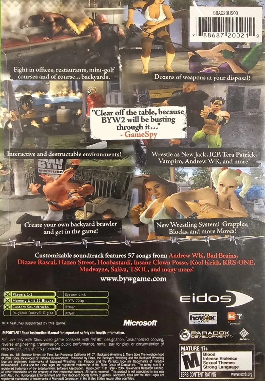 Featuring enhanced graphics and a killer soundtrack, Backyard Wrestling 2 is designed to captivate both casual gamers and hardcore wrestling fans. Dive into the compelling single-player mode, or challenge your friends in intense multiplayer bouts to prove who's the ultimate backyard legend. With numerous unlockable items and special moves, every match promises new surprises and strategies to master. Perfect for fans of action-packed gameplay and brutal, competitive brawls, Backyard Wrestling 2 delivers endless entertainment and replayability. Upgrade your gaming collection with this unique and thrilling Xbox title today.