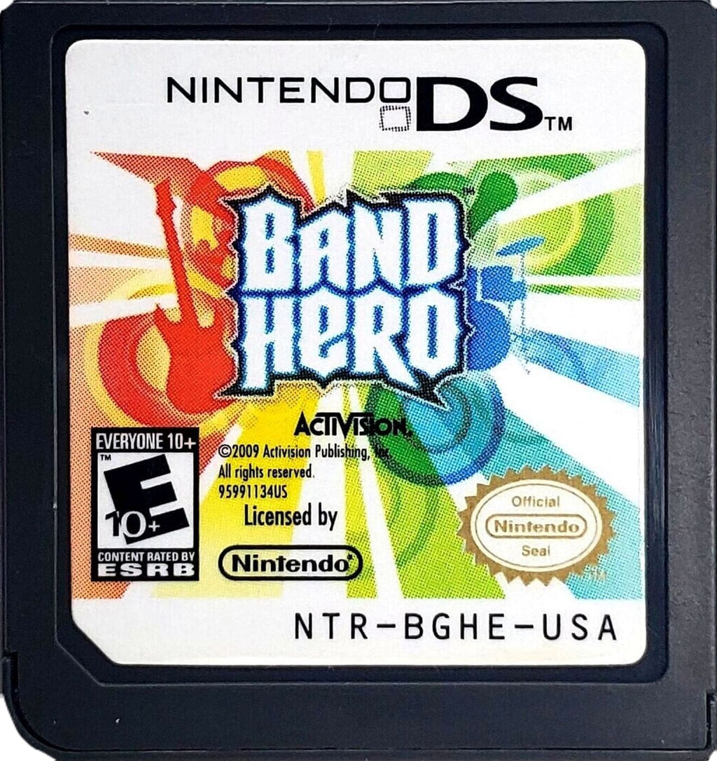 Unleash your inner rock star with Band Hero for the Nintendo DS, a captivating music sensation that brings the thrill of a live concert right to your fingertips. Designed for both seasoned musicians and aspiring artists, Band Hero allows you to master an extensive tracklist featuring popular hits from a variety of genres. With its intuitive controls and striking visuals, players can seamlessly transition through guitar, bass, and drum parts while hitting every note in perfect harmony. The game includes a Guitar Grip and a Drum Skin that attach to your DS, transforming it into a mini stage and delivering an unmatched music gaming experience.