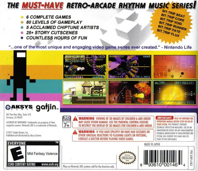 Discover the ultimate rhythm-based gaming experience with Bit.Trip Saga for the Nintendo 3DS, an enthralling collection of six engaging games that perfectly blend captivating visuals with innovative soundtracks. This compilation includes the critically acclaimed titles: Bit.Trip Beat, Bit.Trip Core, Bit.Trip Void, Bit.Trip Runner, Bit.Trip Fate, and Bit.Trip Flux, each offering a unique style of gameplay that will challenge and entertain players of all skill levels. Dive into the retro-inspired graphics and immerse yourself in a journey that seamlessly merges nostalgic charm with futuristic elements, designed to keep you coming back for more.