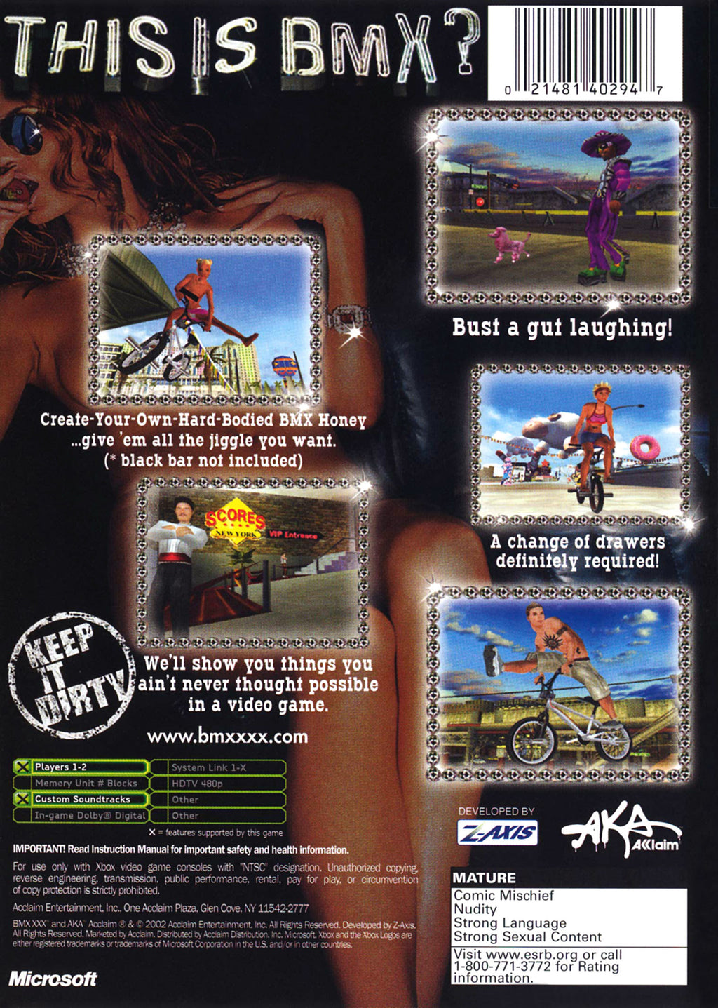 BMX XXX isn't just about racing; it's about expressing your unique style through customizable BMX bikes and a variety of characters. The game features both single-player modes and multiplayer options, allowing you to challenge friends or enjoy solo exploration. Additionally, its mature storyline and humor make it a distinctive choice in the world of sports gaming. Whether you're a seasoned pro or a newcomer eager to experience BMX biking on the Xbox platform, BMX XXX promises excitement and endless entertainment. Don't miss out on the ultimate fusion of stunt biking and high-energy gaming.