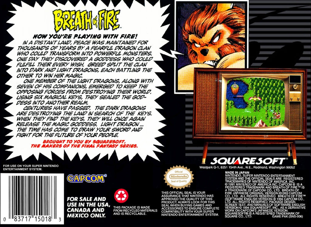 Experience the classic adventure of "Breath of Fire" on the Super Nintendo Entertainment System (SNES), a timeless RPG that continues to captivate gamers with its rich storytelling and dynamic gameplay. Set in a mystical world filled with dragons, magic, and unforgettable characters, this thrilling journey invites players to embark on an epic quest to save their land from darkness. With its stunning 16-bit graphics and a captivating soundtrack, "Breath of Fire" delivers an immersive experience that captures the essence of vintage gaming while providing hours of engaging content.