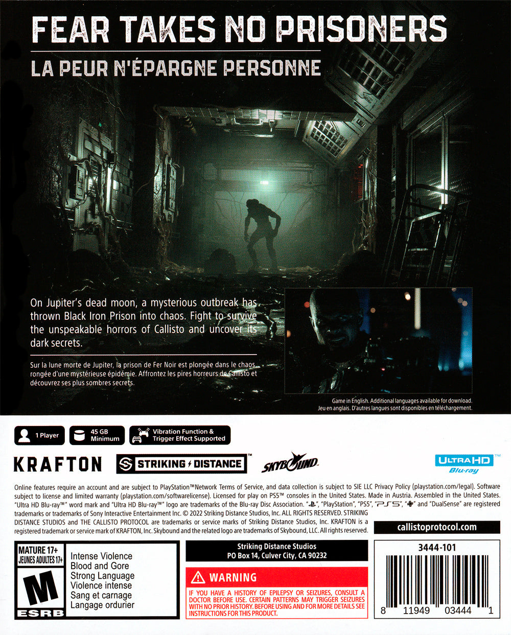 Harness the power of the PS5's processing capabilities for immersive graphics and realistic soundscapes that draw you deeper into this sinister universe. With dynamically evolving gameplay and heart-pounding, cinematic sequences, "The Callisto Protocol" delivers an unparalleled horror experience that will captivate gamers who crave intense, adrenaline-pumping adventures. Perfect the art of survival as you navigate treacherous environments and confront uncanny foes, making this game a must-have addition for any PlayStation 5 collection.
