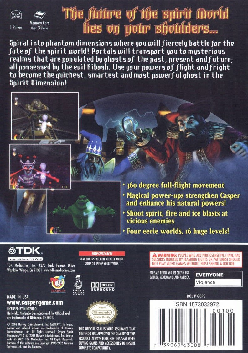 Discover the enchanting world of Casper Spirit Dimensions, a captivating adventure game for the Nintendo GameCube that seamlessly blends action and mystery. Players are invited to explore diverse and hauntingly beautiful ghostly realms, packed with challenging puzzles and thrilling missions. As the friendly ghost Casper, navigate through intricately designed levels, overcoming obstacles and unruly spirits in your quest to restore peace to the afterlife. This timeless classic evokes a sense of nostalgia while engaging gamers with its mesmerizing graphics and immersive storyline.
