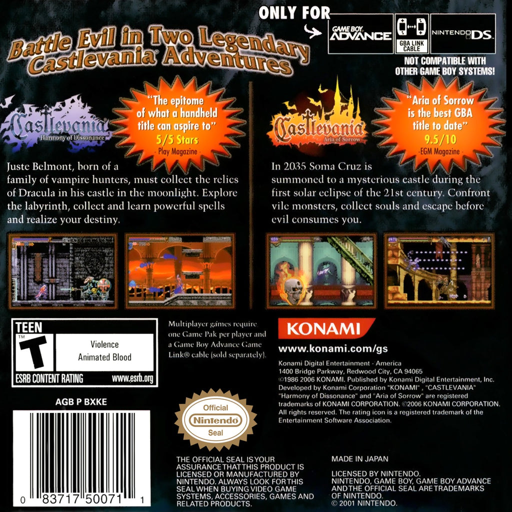 Castlevania Double Pack: Aria of Sorrow / Harmony of Dissonance