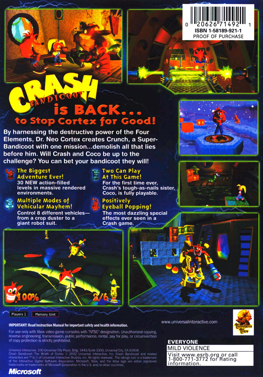 This Xbox version of "Crash Bandicoot: The Wrath of Cortex" ensures seamless compatibility and optimized performance, delivering smooth gameplay and fast load times. Enjoy the game's engaging soundtrack and character voices, which bring the iconic characters and story to life. With a variety of power-ups and hidden secrets, you'll find endless reasons to replay and explore every corner of Crash's universe. Perfect for players of all ages, this action-packed game promises hours of fun for both solo and family gaming sessions. Get ready to join Crash Bandicoot on his epic quest and experience the excitement and challenge of one of the most beloved platformers in gaming history.