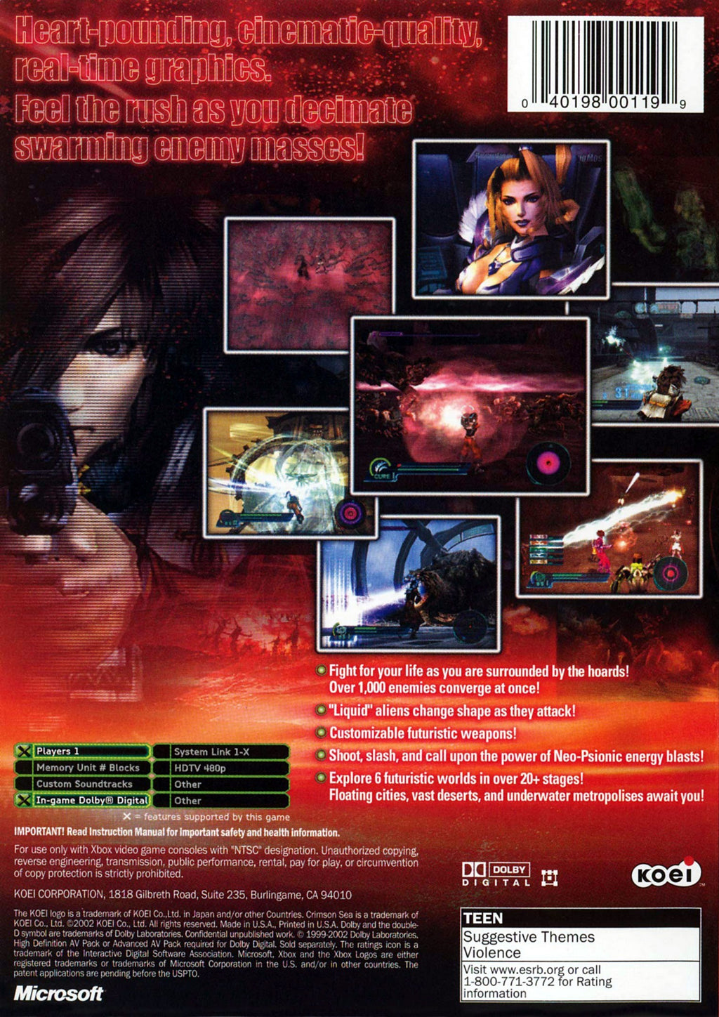"Crimson Sea" is designed to captivate both new players and seasoned gamers, with its unique character progression system and customizable weaponry. The game's deeply engaging narrative is complemented by a hauntingly atmospheric soundtrack that enhances the overall gaming experience. Join alliances with a cast of intriguing characters, each with their own unique abilities and storylines. With frequent updates and downloadable content, "Crimson Sea" promises an ever-evolving adventure that keeps the excitement fresh. Perfect for fans of sci-fi and action-adventure genres, this Xbox exclusive is a must-have addition to any gaming collection.