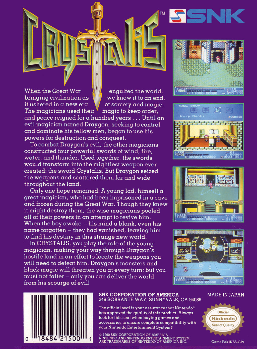 Crystalis is a captivating action-adventure game for the NES that transports players to a post-apocalyptic world filled with magic and mystery. Originally released in 1990 by SNK, this classic title has garnered a dedicated fan base thanks to its engaging storyline and immersive gameplay. As the protagonist, players must navigate through diverse landscapes, solve intricate puzzles, and battle formidable enemies using an array of magical swords and spells. Crystalis stands out for its fluid game mechanics and stunning 8-bit graphics, which provide a rich and nostalgic experience for retro gaming enthusiasts.