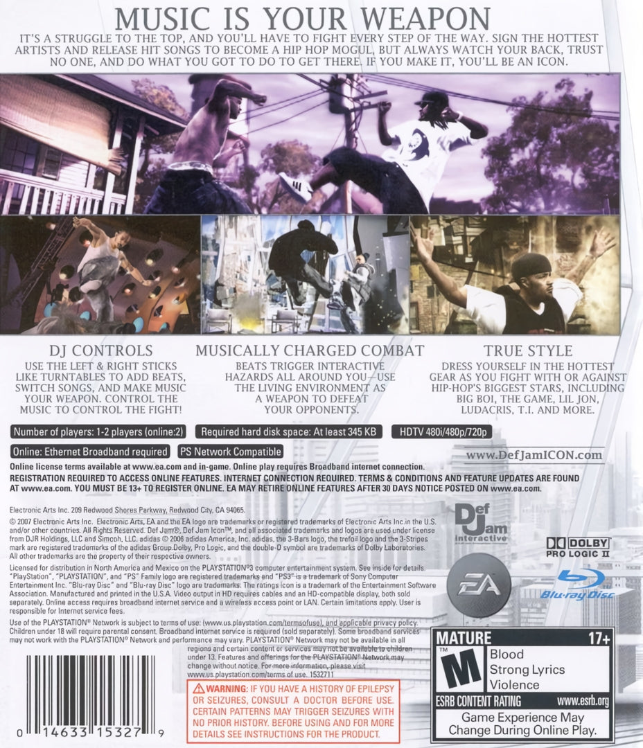 Harness the power of music to influence the environment and gain the upper hand in battles, creating a one-of-a-kind strategic gameplay experience. Whether you're a fan of hip-hop or a passionate gamer, "Def Jam Icon" on PS3 is a must-have addition to your collection, delivering high-energy entertainment that will keep you coming back for more.