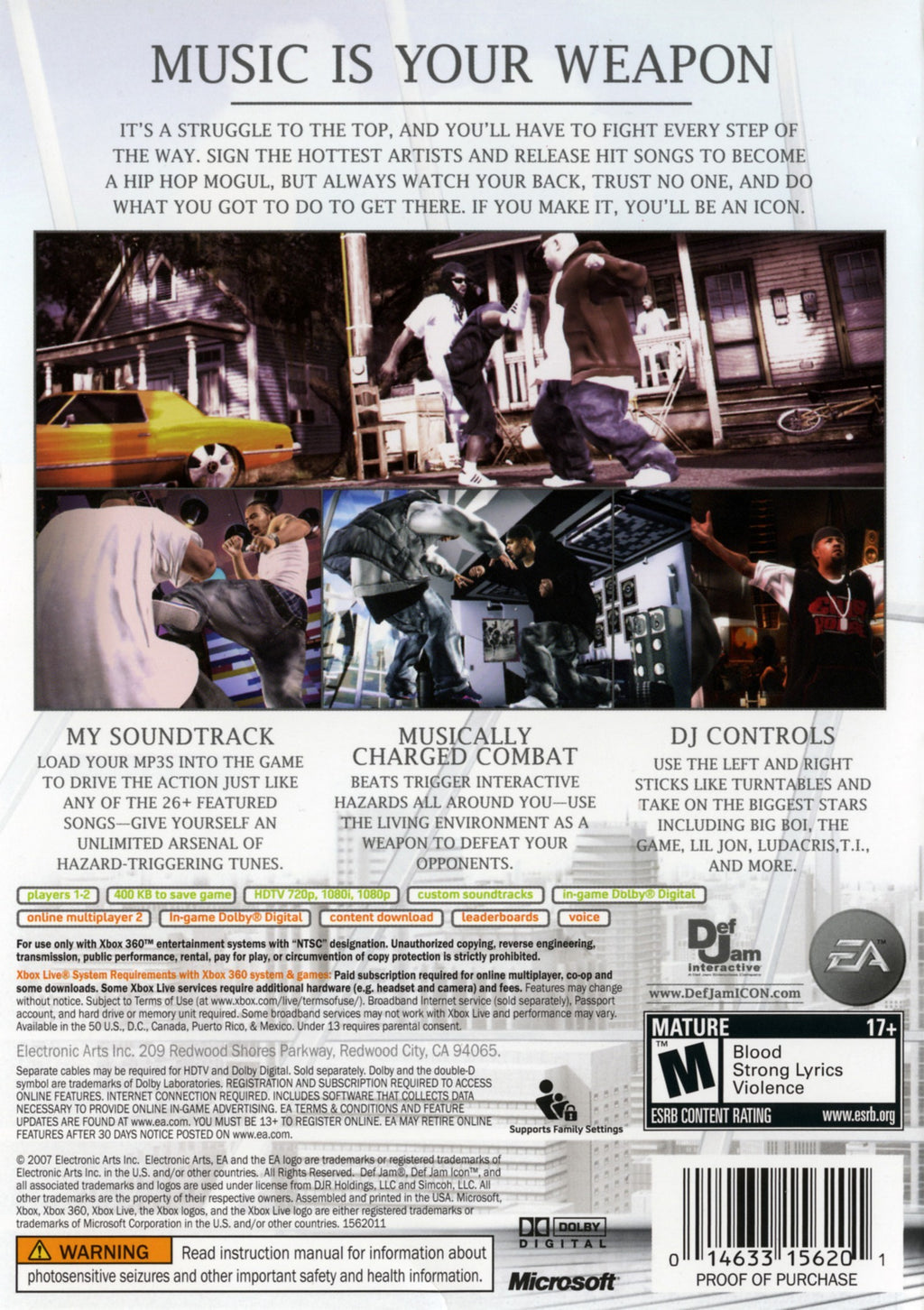 Def Jam Icon for Xbox 360 is more than just a game; it's an exhilarating experience that captures the heart of street culture and music. The game offers a variety of single-player and multiplayer modes, ensuring endless hours of entertainment and competition among friends. With intuitive controls and a deep storyline, players can explore the rich backstory of their chosen fighters while mastering powerful moves and combos. Whether you're a longtime fan of the Def Jam series or new to this thrilling world, Def Jam Icon provides an unmatched blend of style, sound, and action. Elevate your gaming collection today with this must-have title for Xbox 360 and unleash your inner icon.