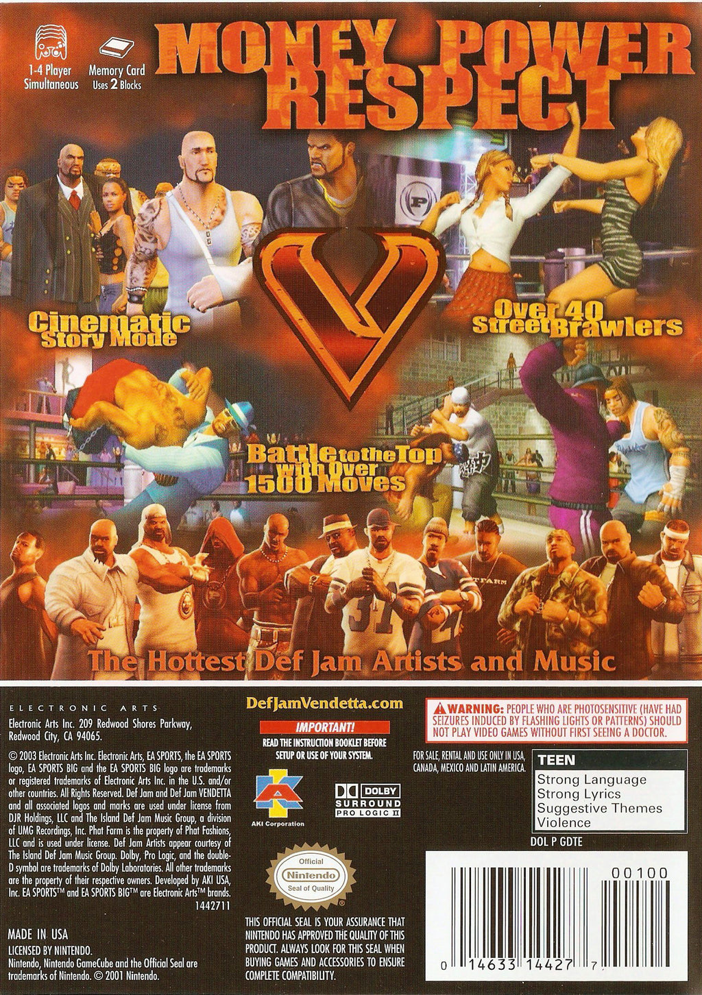 Def Jam Vendetta for the GameCube is an electrifying fighting game that merges the worlds of hip-hop and underground wrestling, offering a one-of-a-kind gaming experience. Dive into an intense storyline filled with rich characters and high-octane action, where players can select from a roster of iconic Def Jam artists like DMX, Method Man, and Ludacris. Designed to captivate fans of both music and gaming, Def Jam Vendetta enthralls players with its unique blend of music-driven fighting techniques and vivid, immersive environments.