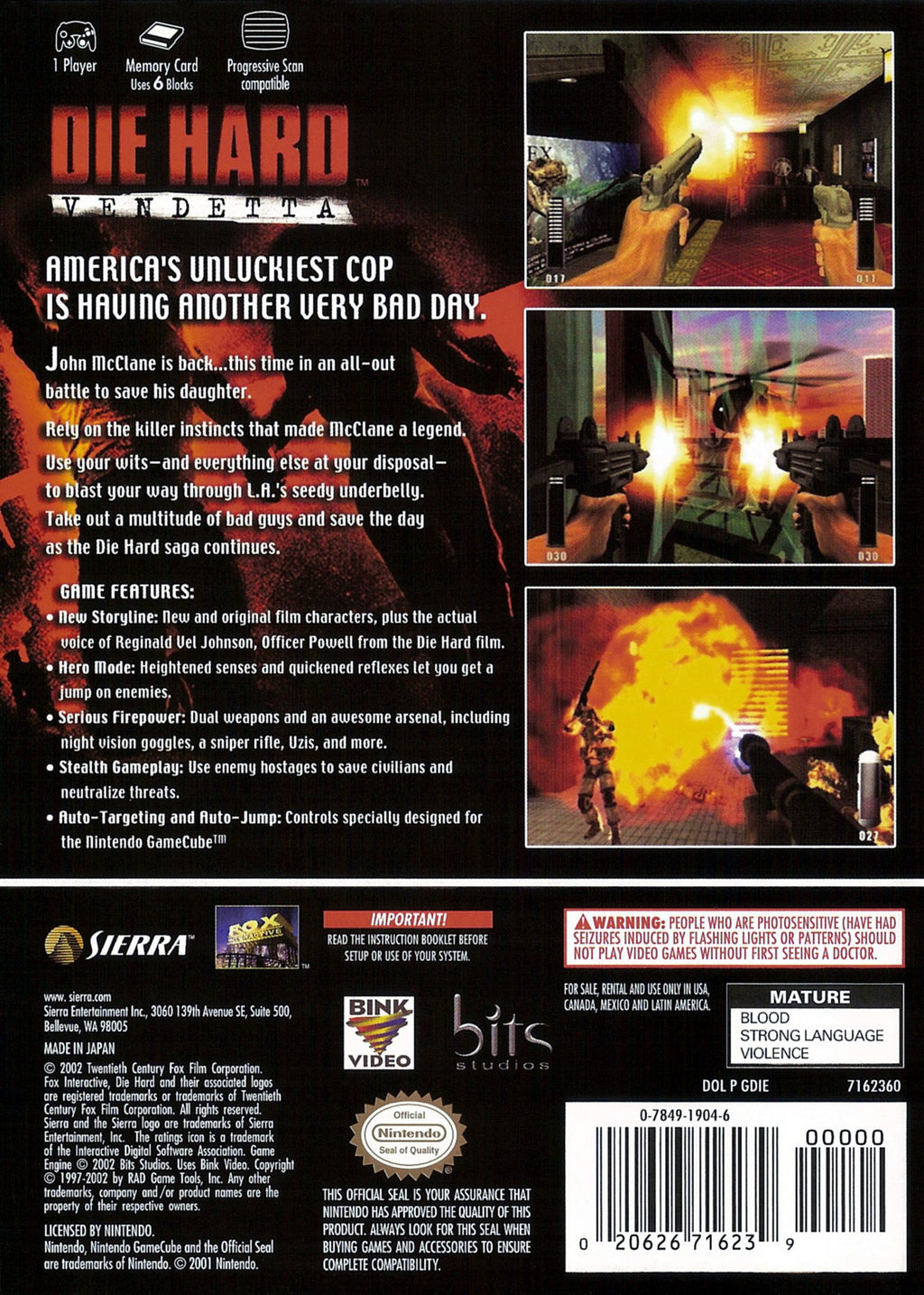"Die Hard: Vendetta" is designed to engage both Die Hard enthusiasts and new players alike, with intuitive controls and dynamic AI opponents. With its rich narrative and action-packed sequences, the game invites players to explore a compelling plot that extends the story of the legendary film series. Perfect for those who crave adrenaline-fueled action, this game remains a must-have in any GameCube collection. Don’t miss out on playing as John McClane, who’s back to save the day with his trademark grit and determination.