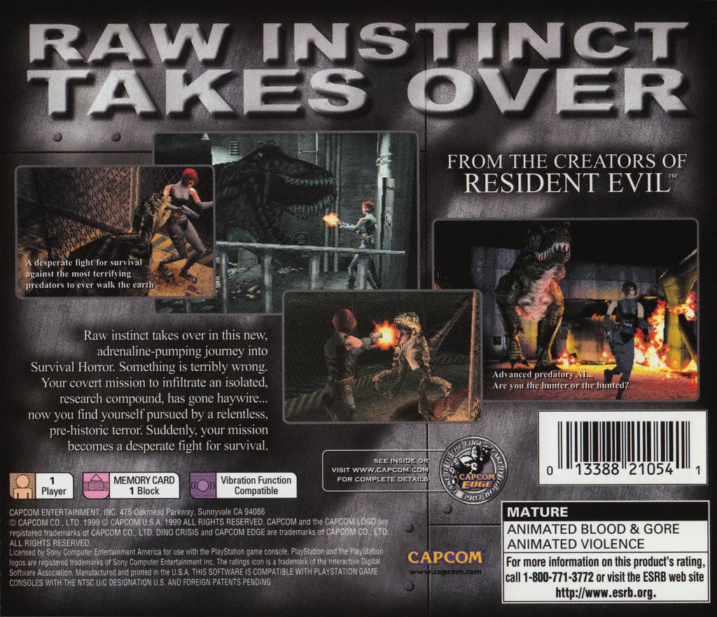 Unleash the terror of the prehistoric era with Dino Crisis, an exhilarating survival horror game exclusive to the PlayStation. Developed by Capcom, this pulse-pounding adventure masterfully blends action and suspense, placing you amidst a high-stakes mission on a remote island overrun by dinosaurs. Featuring cutting-edge graphics for its time and an immersive storyline, Dino Crisis invites players to navigate treacherous terrains, solve complex puzzles, and engage in heart-stopping combat against these ancient predators. The atmospheric soundtrack and meticulously detailed environments enhance the sense of dread and urgency, keeping you on the edge of your seat from start to finish.