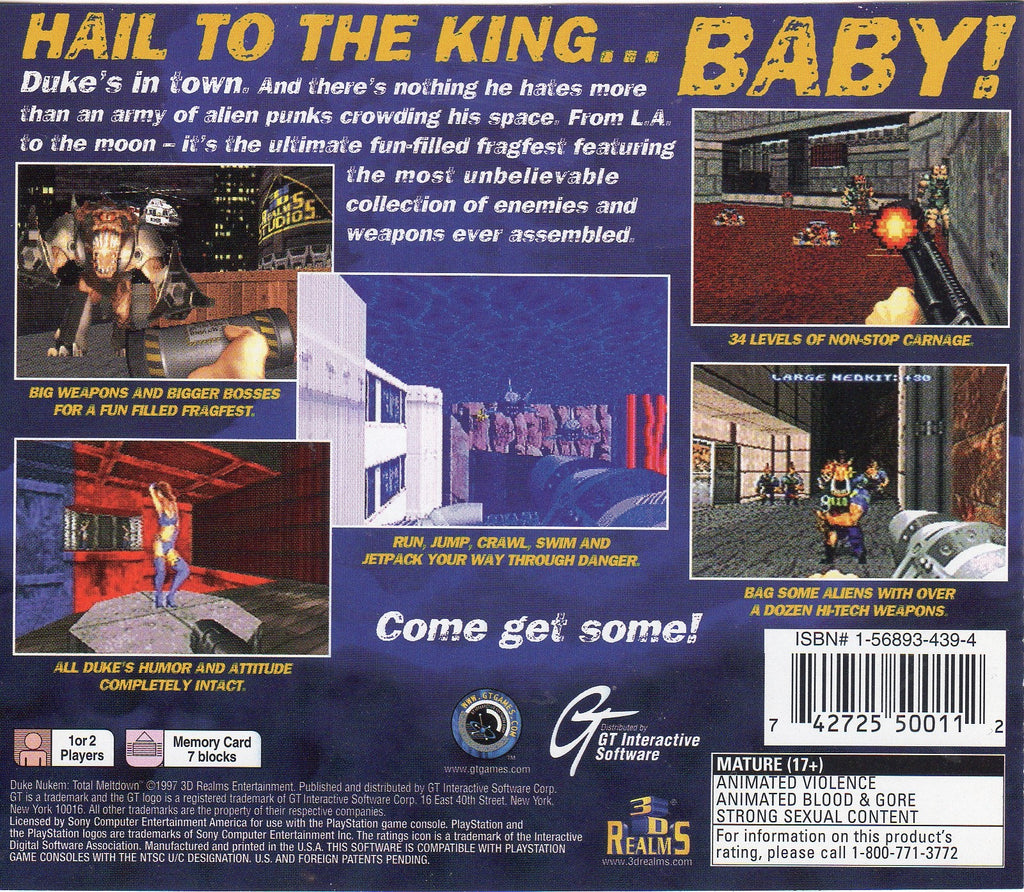 Experience the explosive action of "Duke Nukem: Total Meltdown," one of the most iconic games available on PlayStation. Immerse yourself in Duke Nukem's world where you battle alien invaders across challenging levels, all reimagined with enhanced graphics and sound for a more immersive gaming experience. This classic title combines fast-paced shooting action with Duke's signature humor, making it a must-have for any action game enthusiast looking to relive the golden era of gaming. Whether you're a nostalgic fan or a new player seeking a high-octane adventure, "Duke Nukem: Total Meltdown" delivers non-stop thrills and excitement.