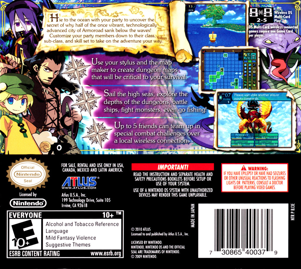 Etrian Odyssey III offers stunning hand-drawn graphics that bring the underwater world to life, complemented by an engaging soundtrack that enhances your adventure. Whether you are a seasoned adventurer or new to the series, this game delivers endless hours of entertainment and discovery. Perfect for fans of role-playing games and those seeking to test their strategic acumen, Etrian Odyssey III: The Drowned City is a must-have addition to your Nintendo DS collection.