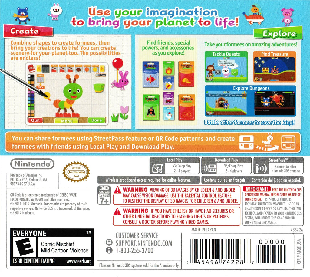 Experience unlimited creativity with "Freakyforms Deluxe: Your Creations, Alive!" exclusively on Nintendo 3DS. This enhanced version offers more features, creatures, and a brand-new RPG mode for endless fun and exploration. Design your own quirky characters known as "Formees," and bring them to life in your customized world where the possibilities are limitless.