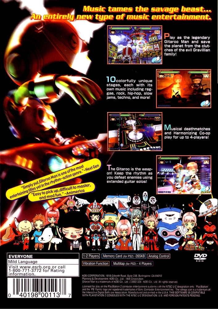 Perfect for PlayStation 2 enthusiasts, "Gitaroo Man" offers an engaging gameplay experience that is both challenging and rewarding, ensuring hours of entertainment. With its intuitive controls and increasing difficulty levels, players will find themselves honing their skills as they progress through intricate stages and face formidable bosses. Whether you're a seasoned gamer or new to rhythm-based games, "Gitaroo Man" captivates with its dynamic blend of story, style, and sound, making it a must-have addition to any PS2 game collection. Experience the music and action in harmony, and let "Gitaroo Man" take you on an unforgettable journey.