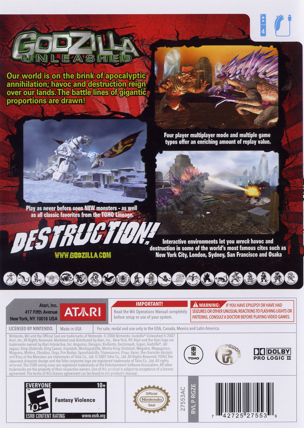 Unleash the ultimate gaming experience with "Godzilla Unleashed" for the Nintendo Wii, where players can immerse themselves in the thrilling world of iconic monsters and epic battles. Designed for the Wii platform, this action-packed game allows you to take control of Godzilla and over 20 other legendary kaiju, each with unique abilities and powers. Navigate through dynamic destructible environments, engage in intense combat, and complete challenging missions to save or conquer the world. With its intuitive motion controls, Godzilla Unleashed provides an exhilarating gaming experience that leverages the Wii's capabilities for a truly interactive adventure.