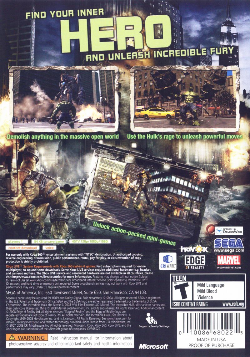 Unleash your inner superhero with "The Incredible Hulk" for Xbox 360, a thrilling action-adventure game that puts you in the massive, green shoes of the iconic Marvel character. Dive into an immersive experience where you can explore an open-world New York City, using Hulk's immense power to battle iconic enemies and destroy everything in your path. Master Hulk's incredible strength and upgrade his abilities as you complete exciting missions and uncover hidden secrets throughout the city. With stunning graphics and dynamic gameplay, this game offers hours of entertainment for both Marvel fans and gamers alike.