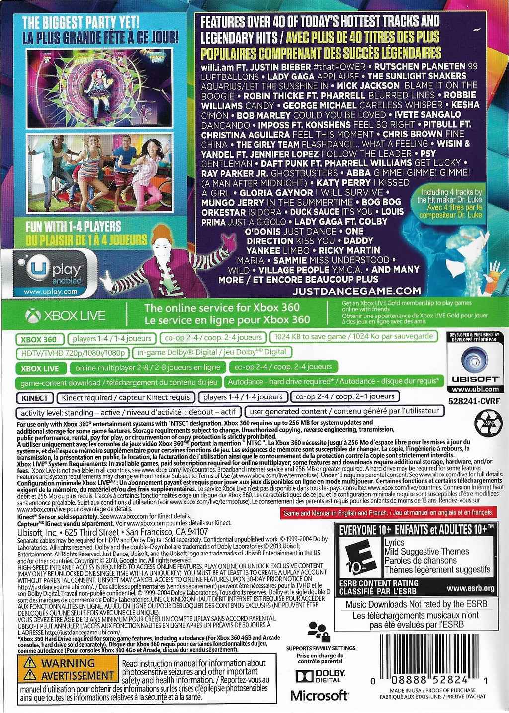 Just Dance 2014 for Xbox 360 also includes various game modes to keep the excitement going. The new “On Stage” mode allows players to become the star of their own performance, complete with backup dancers and extra challenges. Connect with friends and family using the multiplayer feature, or take the competition online with the World Dance Floor mode. Plus, keep track of your progress and fitness goals with the Just Dance Player Card. Experience the joy of dance, enhance your skills, and join a global community of dancers with Just Dance 2014!