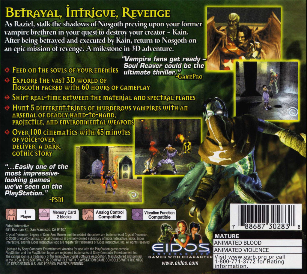 Immerse yourself in the captivating world of "Legacy of Kain: Soul Reaver" for PlayStation, where dark fantasy and riveting gameplay meet in an unforgettable action-adventure experience. Step into the shoes of Raziel, a soul-devouring vampire on a quest for vengeance in a richly detailed universe filled with hidden secrets and intricate puzzles. With its groundbreaking graphics and dynamic combat system, this classic title continues to captivate players even decades after its original release, offering hours of intense and rewarding gameplay.