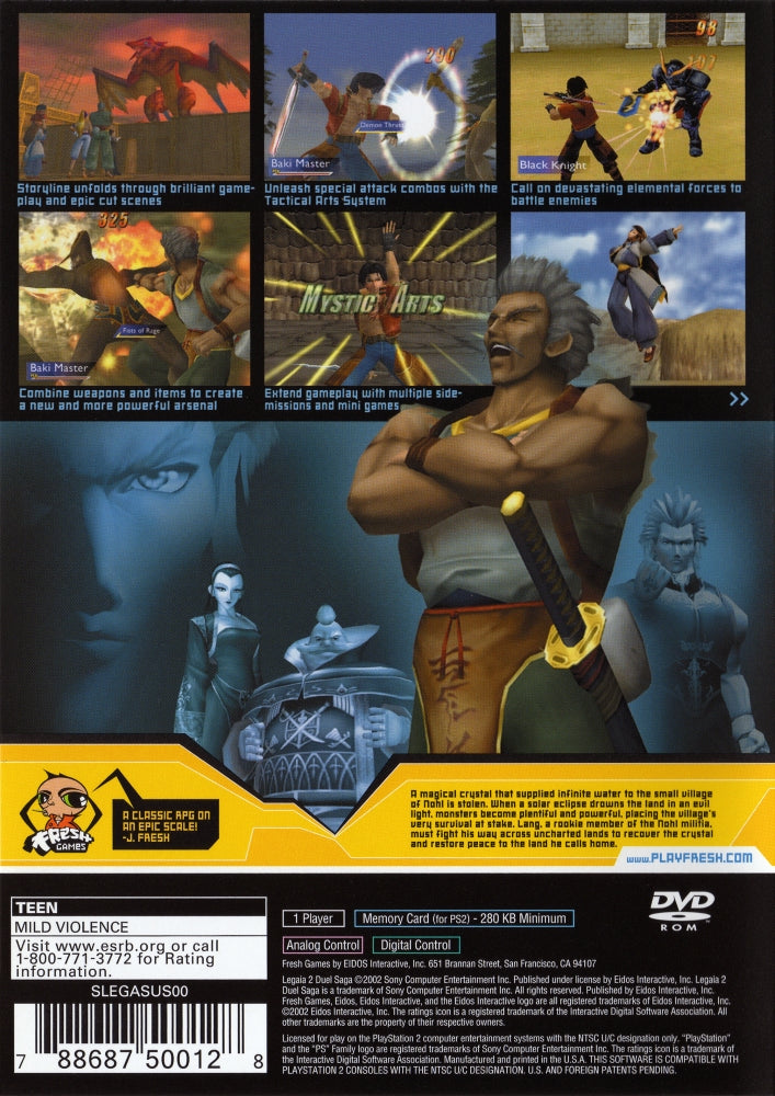 Legaia 2: Duel Saga offers a visually stunning and acoustically immersive experience, featuring meticulously crafted graphics and a captivating soundtrack that heightens the game's enchanting atmosphere. Perfect for fans of traditional RPGs, this game combines timeless elements with innovative features to create an unforgettable adventure. With a compelling narrative that keeps players hooked and a dynamic combat system that rewards skill and strategy, Legaia 2: Duel Saga is a must-have addition to any PlayStation 2 collection. Don't miss the opportunity to embark on this legendary quest and experience the magic and mystery of Legaia.