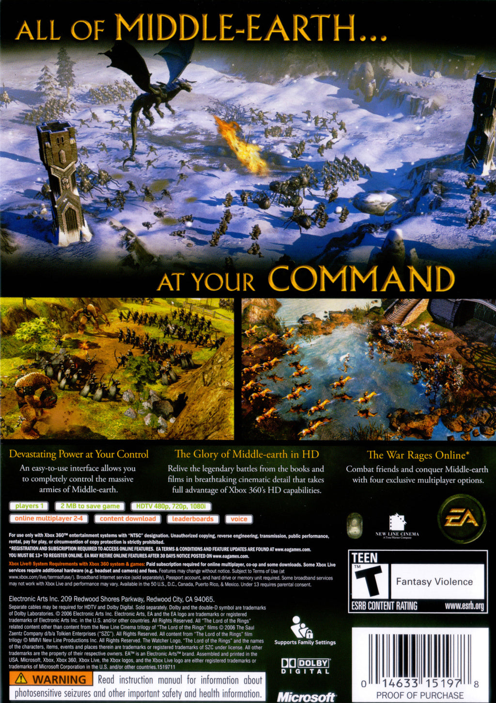 Experience the epic adventure and strategic depth of "The Lord of the Rings: The Battle for Middle-Earth II" on the Xbox 360, where the legendary saga of Middle-earth unfolds like never before. Dive into a world of real-time strategy, commanding iconic armies of Elves, Dwarves, and Men against the mighty forces of Sauron. With stunning graphics and detailed environments, players can relive the most thrilling battles from J.R.R. Tolkien's universe, including the defense of Helm's Deep and the siege of Minas Tirith. Immerse yourself in a campaign that expands the rich lore with new characters, memorable locations, and breathtaking landscapes, offering both seasoned gamers and LOTR enthusiasts an electrifying gameplay experience.