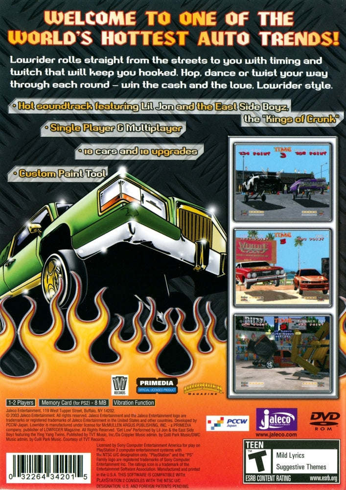 Discover the captivating world of "Lowrider," a thrilling game for the PlayStation 2 that brings the vibrant lowrider car culture right to your living room. Immerse yourself in its unique combination of racing and rhythm-based challenges as you customize your own fleet of iconic lowrider cars. With a wide array of personalization options, including paint jobs, hydraulics, and decals, "Lowrider" allows you to express your style and creativity like never before.