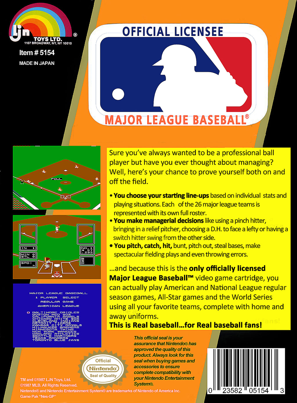 Ideal for both nostalgic retro gamers and new players, "Major League Baseball" offers endless hours of entertainment with its single or multiplayer modes. The game's captivating challenges and competitive play make it a must-have addition to any NES collection. Perfectly balanced for fans of all ages, it presents an engaging way to relive the golden era of gaming while celebrating the tradition of Major League Baseball. Whether you're aiming to secure a World Series victory or simply enjoying a casual match, this game promises to deliver thrills with every inning.