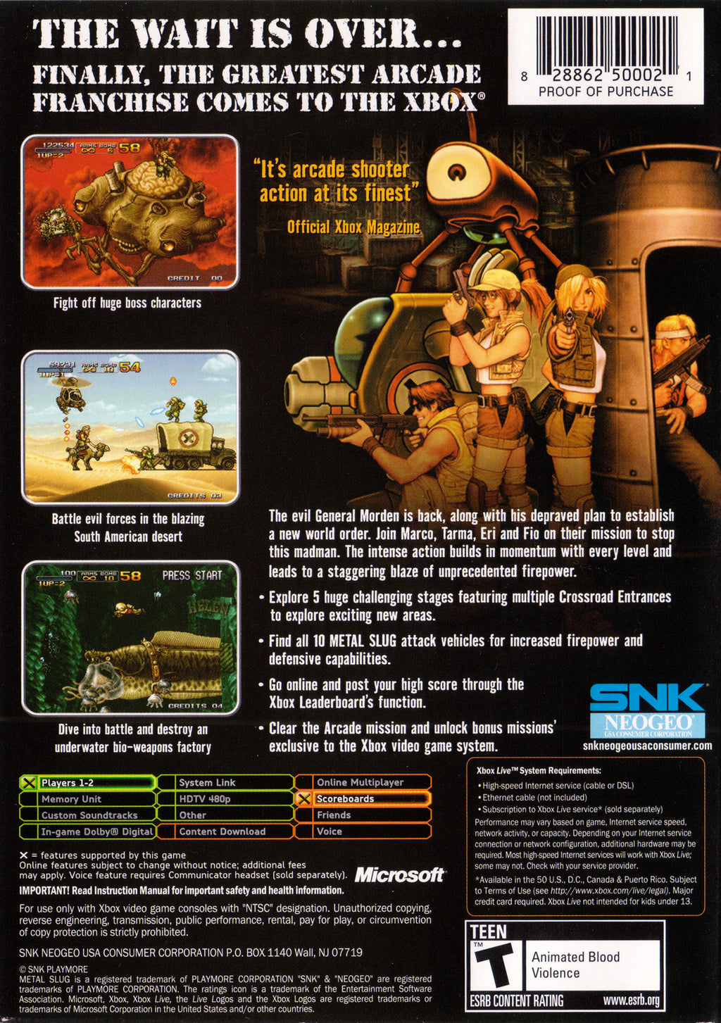 Experience the riveting action of "Metal Slug 3" on Xbox, a timeless classic that brings arcade excitement right to your living room. Immerse yourself in epic battles with this legendary 2D run-and-gun game, renowned for its vibrant graphics, detailed pixel art, and challenging gameplay. Featuring a variety of intense missions and an arsenal of unique weapons, "Metal Slug 3" offers hours of thrilling combat to both new players and long-time fans of the series.