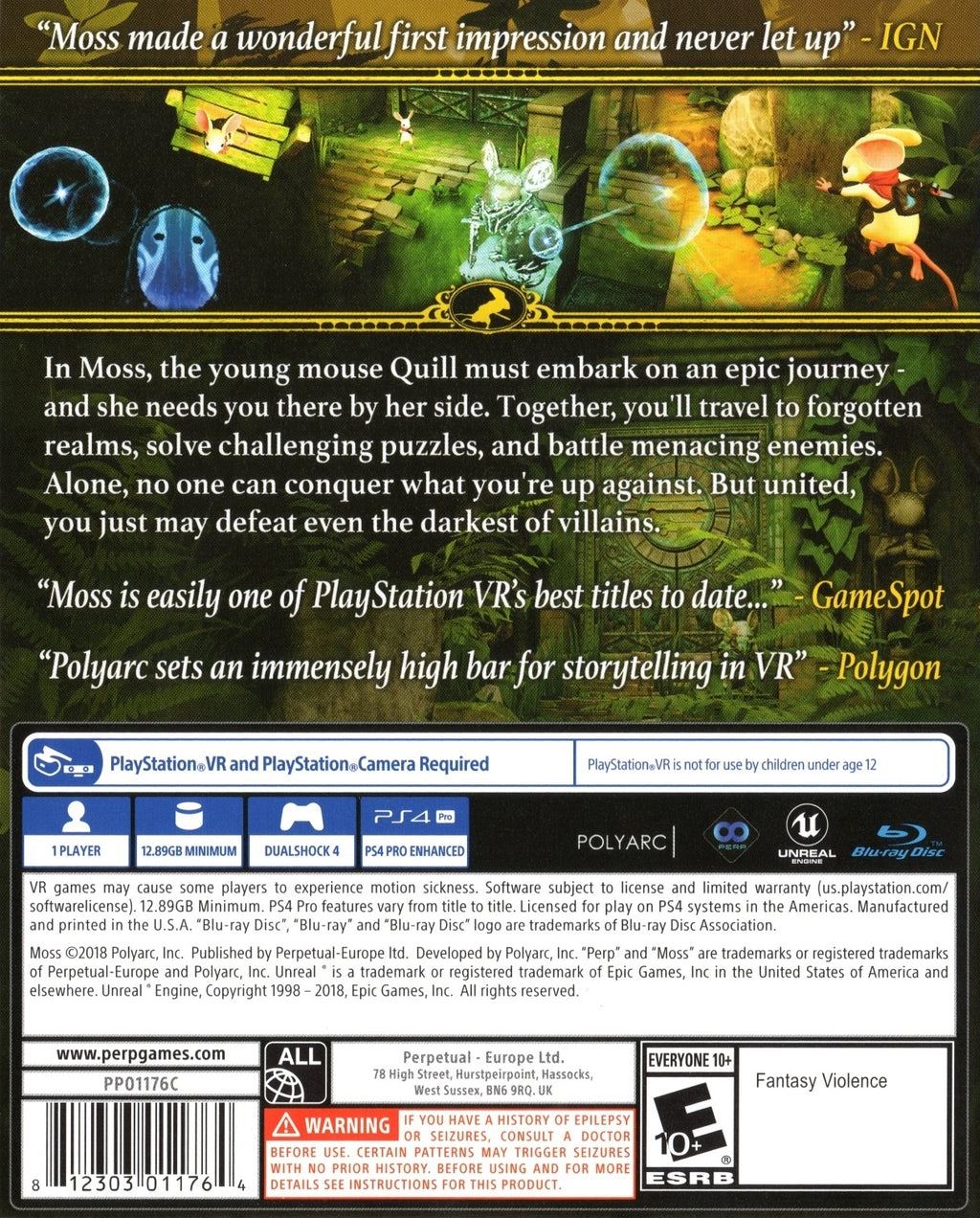 In Moss, players will explore beautifully crafted environments, all brought to life through high-definition visuals and a mesmerizing soundtrack that elevates the senses. As you guide Quill on her quest, you'll uncover rich narratives and form emotional bonds with the characters, creating a truly unforgettable gaming experience. This PS4 exclusive title stands out in the world of action-adventure games with its unique blend of heart, innovation, and visually stunning design. Whether you're a seasoned gamer or new to the world of VR, Moss offers hours of entertainment and discovery. Get ready to embark on a journey like no other and experience the wonder of Moss on your PS4 today.
