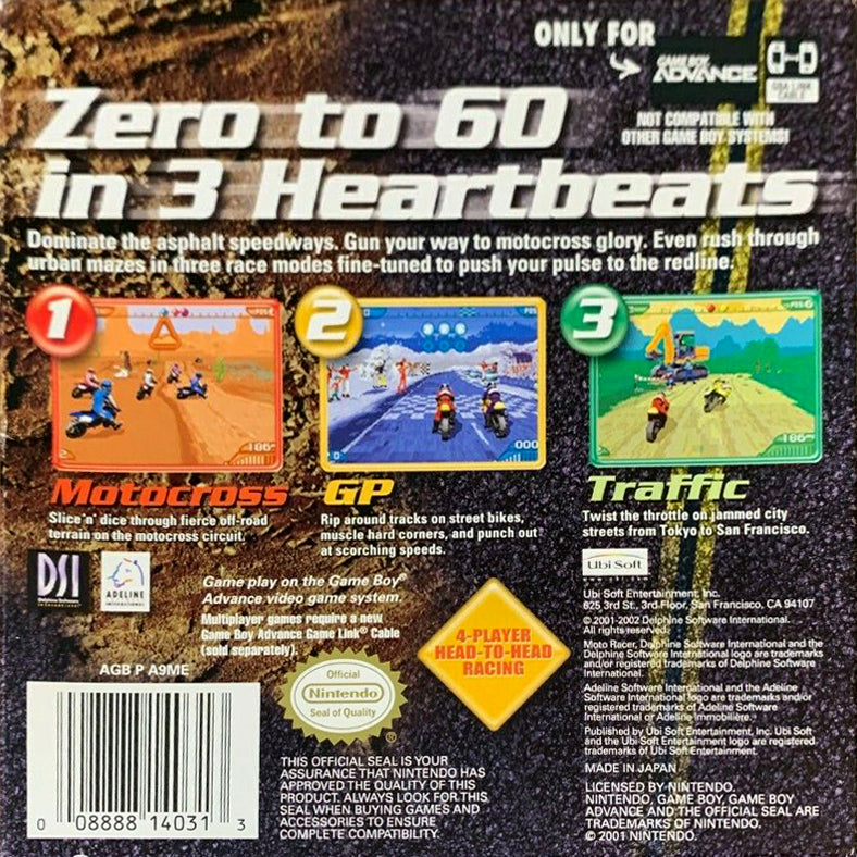 Experience the thrill of high-speed racing with Moto Racer Advance, a captivating game designed exclusively for the Game Boy Advance. Immerse yourself in a dynamic racing experience that combines stunning graphics, realistic sound effects, and a diverse range of tracks to test your riding skills. With its intuitive controls and engaging gameplay, Moto Racer Advance ensures hours of entertainment, whether you're a casual gamer or a racing enthusiast. Each race is packed with challenges and surprises, offering the perfect blend of excitement and strategy to keep you on the edge of your seat.