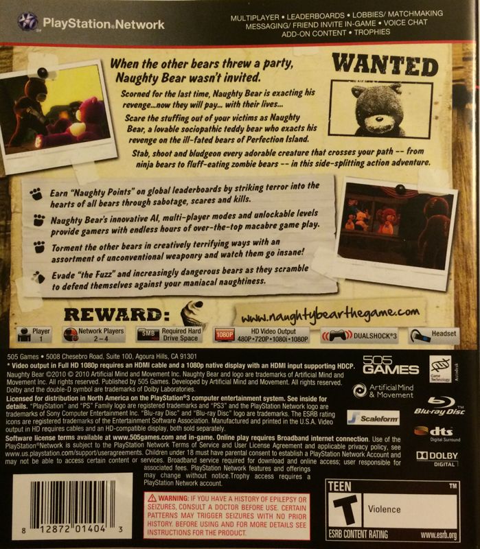 Unleash your inner mischief-maker with "Naughty Bear" for PS3, a hilariously twisted action-adventure game where you take on the role of a mischievous bear out for revenge. Navigate through an open-world environment as you embark on chaotic quests, causing mayhem and wrecking havoc on your unsuspecting teddy bear islanders. With over-the-top antics and creative tactics at your disposal, every level presents unique challenges and opportunities to earn points, unlock new costumes, and discover hidden secrets.
