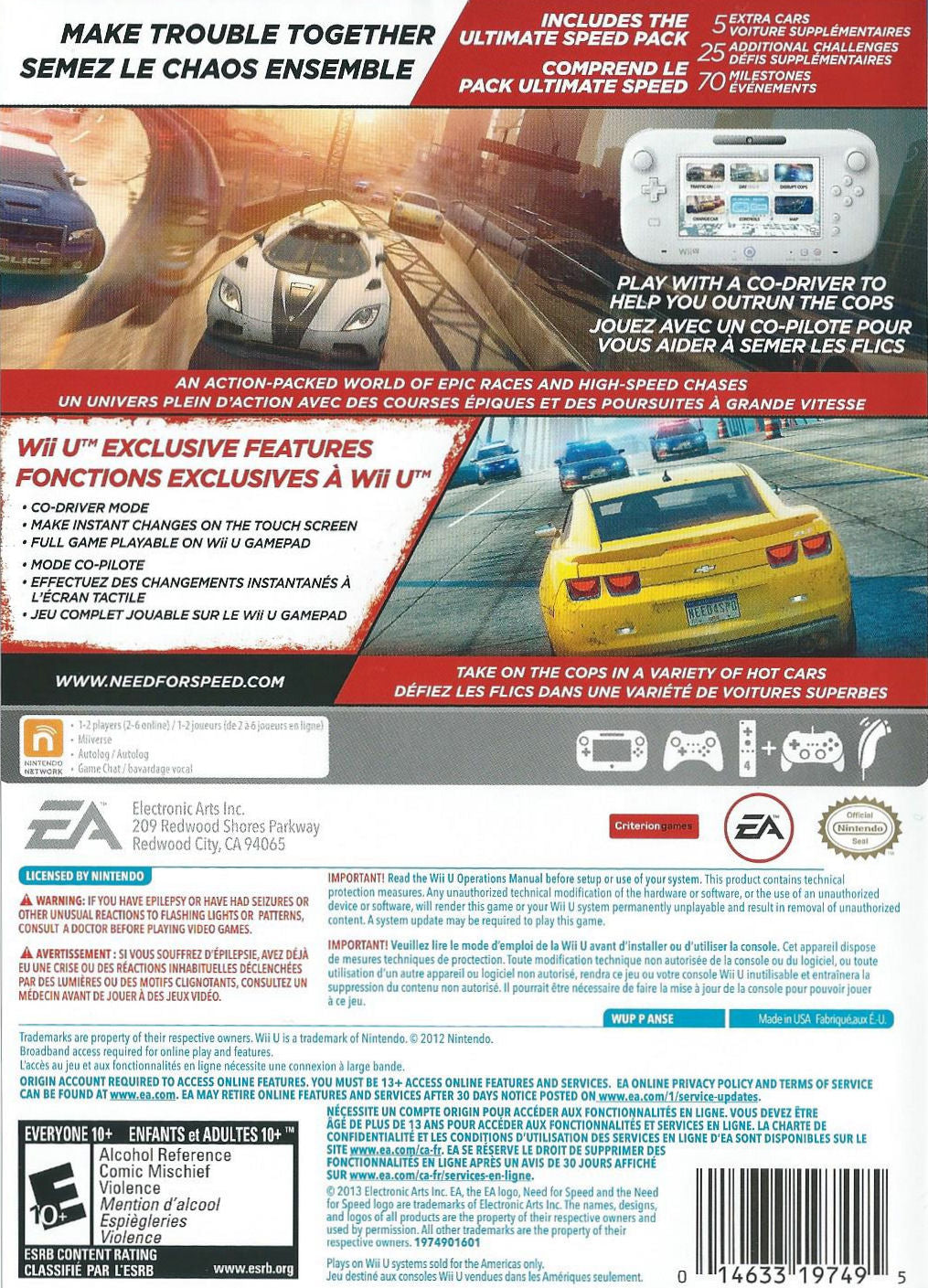 Optimized for the Wii U, "Need for Speed Most Wanted U" takes full advantage of the GamePad's unique features, offering intuitive controls and second-screen gameplay. The game introduces innovative ways to challenge friends with the Autolog 2.0 system, which tracks stats and compares race results for ultimate bragging rights. Whether you're a casual gamer or a racing enthusiast, this game provides endless hours of entertainment with its blend of speed, strategy, and stunning visuals. Get ready to rev your engines and dominate the streets in this must-have addition for any Wii U collection.