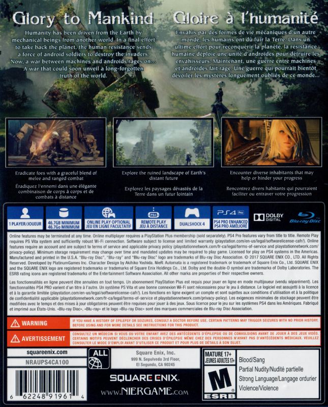 Discover the captivating world of Nier: Automata for PS4, an award-winning action RPG that blends an extraordinary narrative with breathtaking combat and stunning visuals. Set in a post-apocalyptic universe, players embark on a thrilling journey as androids 2B, 9S, and A2 to reclaim Earth from otherworldly invaders. With dynamic and fluid combat mechanics, this critically acclaimed game offers an unparalleled gaming experience, combining fast-paced battles with strategic gameplay elements.