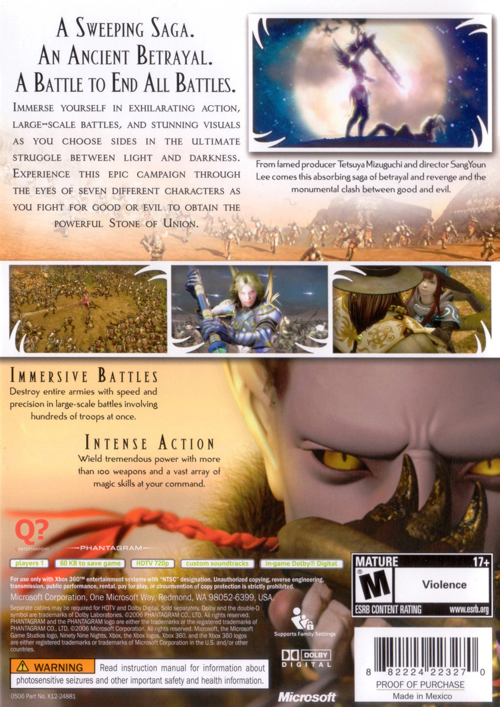 Perfect for fans of action and fantasy genres, "N3: Ninety-Nine Nights" provides an absorbing single-player campaign that challenges your skills and strategy on the battlefield. This Xbox 360 classic combines fast-paced combat with strategic planning, making it an essential addition to any gamer’s collection. Whether you're looking to enjoy an epic solo adventure or seeking to hone your strategic prowess, "N3: Ninety-Nine Nights" delivers on all fronts with its compelling narrative and stunning presentation. Enhance your gaming library with this extraordinary title that continues to captivate players worldwide long after its original release.