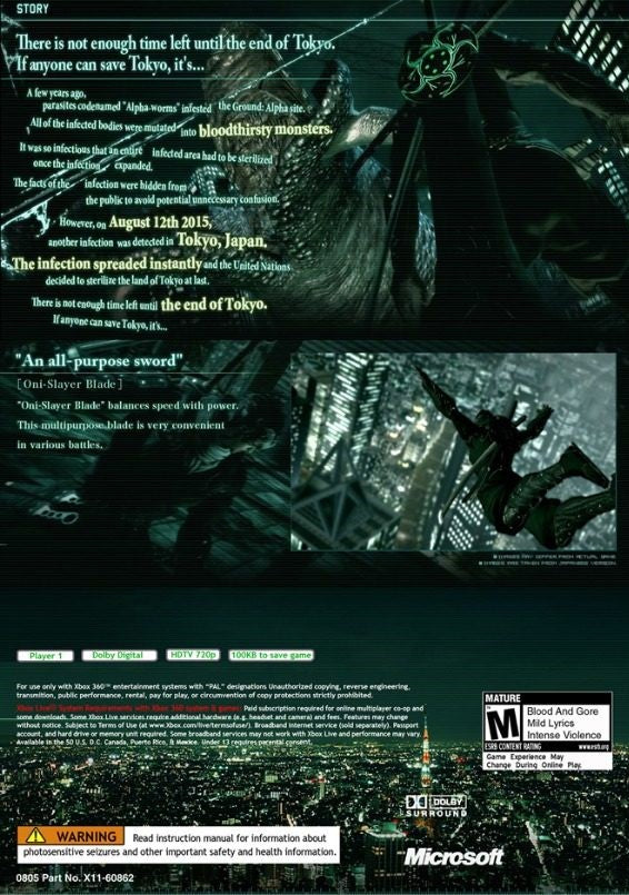 Introducing the Ninja Blade for Xbox 360, a thrilling action-adventure game that delivers an adrenaline-pumping experience like no other. Set in a visually stunning urban landscape, players step into the shoes of a modern-day ninja tasked with protecting humanity from a horrific mutant outbreak. With its fast-paced combat system, Ninja Blade keeps players on the edge of their seats as they master the art of ninjutsu, combining highly responsive controls with fluid character movements. Engage in epic battles against formidable enemies, utilizing an arsenal of weapons and special abilities to vanquish foes. The game's immersive storyline and breathtaking graphics make it a must-have for fans of action-packed gaming.