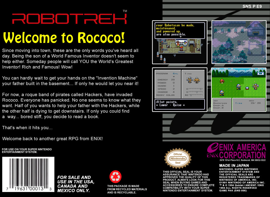 Discover the captivating world of Robotrek, a unique and engaging RPG adventure for the Super Nintendo Entertainment System (SNES). In this classic game, players take on the role of a young inventor who must create and customize a team of robots to battle a variety of foes in the quest to save the planet. With its innovative combination of strategy and role-playing elements, Robotrek provides players with endless customization options, allowing for a truly personalized gaming experience.