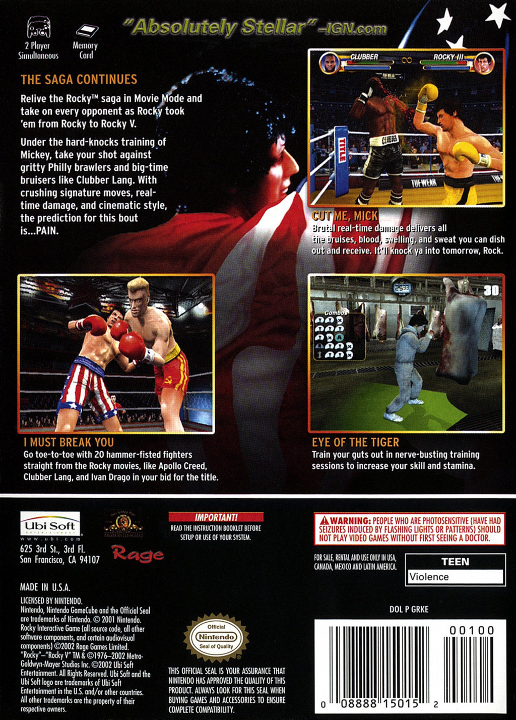 Experience the unparalleled excitement of boxing with "Rocky" for the GameCube, an adrenaline-pumping video game that captures the essence of the iconic Rocky film franchise. Step into the ring with legendary characters like Rocky Balboa, Apollo Creed, and Clubber Lang, as you rise through the ranks from amateur to world champion. Featuring realistic graphics and intuitive controls, this game provides a visceral boxing experience that appeals to both veteran gamers and newcomers alike. With multiple gameplay modes, including Exhibition, Knockout Tournament, and Career, players can hone their skills and strategy to dominate the competition.