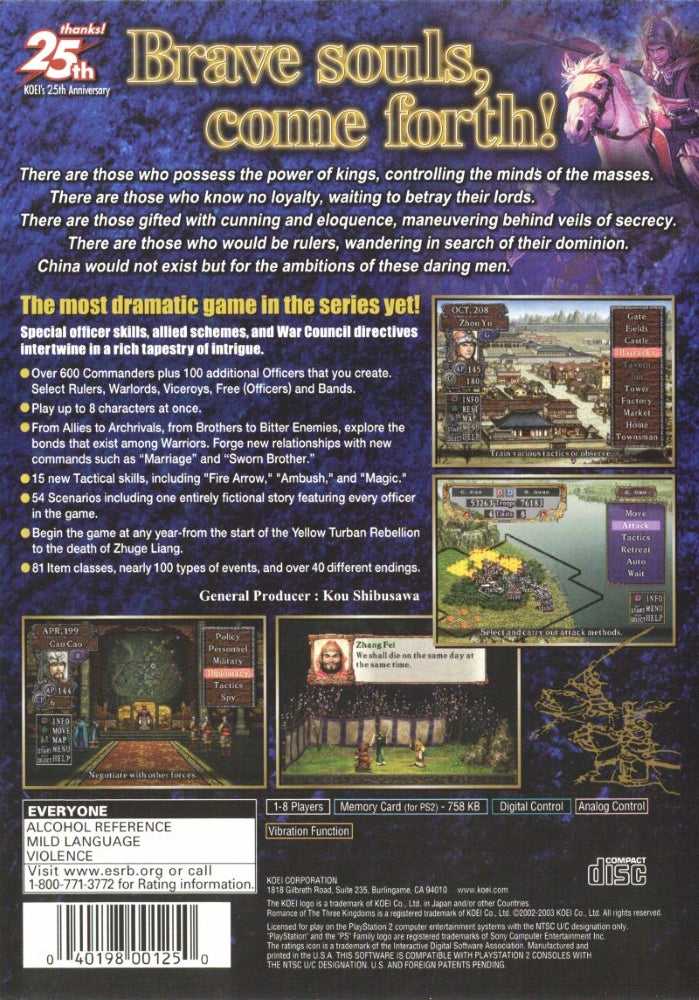 Experience the rich tapestry of ancient Chinese history with "Romance of the Three Kingdoms VIII" for the PS2, a captivating strategy game that puts you at the center of epic battles and political intrigue. As you navigate the tumultuous era of the Three Kingdoms, you'll have the opportunity to control over 700 characters, each with unique skills and personalities, allowing for an immersive storytelling experience. The game's deep strategy elements, from managing resources to forming alliances, provide endless replayability, ensuring each playthrough is a unique adventure.