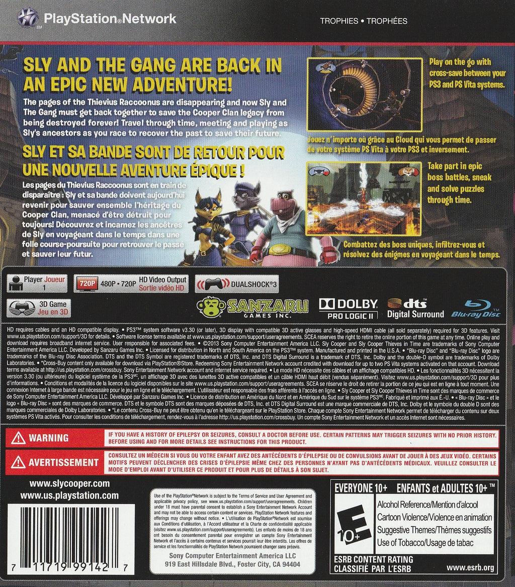 Prepare to be immersed in creatively designed levels that challenge your stealth and problem-solving skills, making you feel like a true master thief. Advanced multiplayer options and upgraded features enhance the gaming experience, offering endless replay value for both new players and nostalgic fans of the Sly Cooper series. Perfect for anyone looking to dive into an epic quest filled with humor, action, and memorable characters. Optimize your gameplay experience and relive the Sly Cooper magic with "Thieves in Time," an essential addition to any PS3 collection.