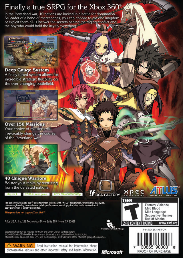 Experience the captivating world of Spectral Force 3, an immersive tactical role-playing game exclusively for Xbox 360. Set in a richly detailed fantasy universe, players are thrust into strategic battles filled with intricate plots and diverse characters, each with unique abilities. As you embark on your epic journey, you will make critical decisions and develop complex battle strategies to outsmart formidable adversaries and uncover hidden secrets.