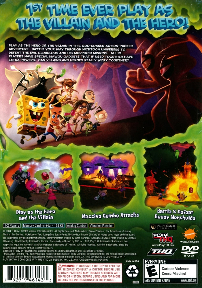 Dive into an exhilarating underwater adventure with "SpongeBob SquarePants Featuring Nicktoons: Globs of Doom" for the PS2. This action-packed game brings together your favorite Nickelodeon characters, including SpongeBob SquarePants, Danny Phantom, and Jimmy Neutron, as they unite to thwart the impending global disaster caused by the sinister Morphoids. Players can take control of 10 beloved Nicktoons, each equipped with unique abilities and powers, creating a dynamic and engaging gameplay experience that is perfect for fans of all ages.