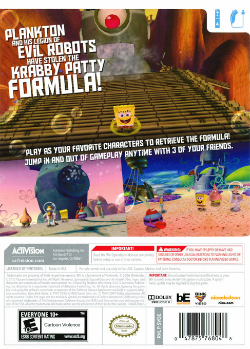 Dive into the zany underwater world of Bikini Bottom with "SpongeBob SquarePants: Plankton's Robotic Revenge" for the Wii. This action-packed game lets players join SpongeBob, Patrick, Sandy, Squidward, and Mr. Krabs in a thrilling quest to stop Plankton's dastardly plot. Enjoy vibrant graphics and dynamic gameplay as you explore iconic locations from the beloved animated series, battling mechanical minions and solving puzzles to thwart Plankton's evil plans. Whether you're a longtime fan of SpongeBob or new to the series, this game offers endless hours of family-friendly entertainment suitable for all ages.