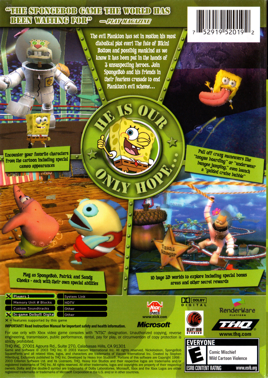 Dive into an underwater adventure with "SpongeBob SquarePants: The Battle for Bikini Bottom" on Xbox, where you can join SpongeBob, Patrick, and Sandy in the fight to save Bikini Bottom from Plankton's evil robot army. Immerse yourself in this thrilling platformer, as you explore iconic locations from the beloved TV series, including Jellyfish Fields and the Goo Lagoon. With enhanced graphics and faithful character renditions, the game brings the whimsical world of SpongeBob to life, offering hours of entertainment for both fans and newcomers alike.