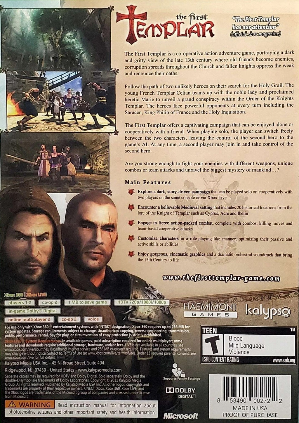 Experience the epic journey of The First Templar on Xbox 360, where you will dive into the thrilling world of the Crusades. This action-adventure game immerses players in a captivating plot full of intrigue and mystery, following the story of a brave Templar knight and his unlikely companion. With seamless co-op gameplay, you can either explore solo or team up with a friend for a richer narrative experience. Navigate treacherous landscapes, solve challenging puzzles, and battle fierce enemies to uncover ancient secrets hidden within. Perfect for fans of historical adventures and strategic combat, The First Templar offers hours of engaging gameplay.
