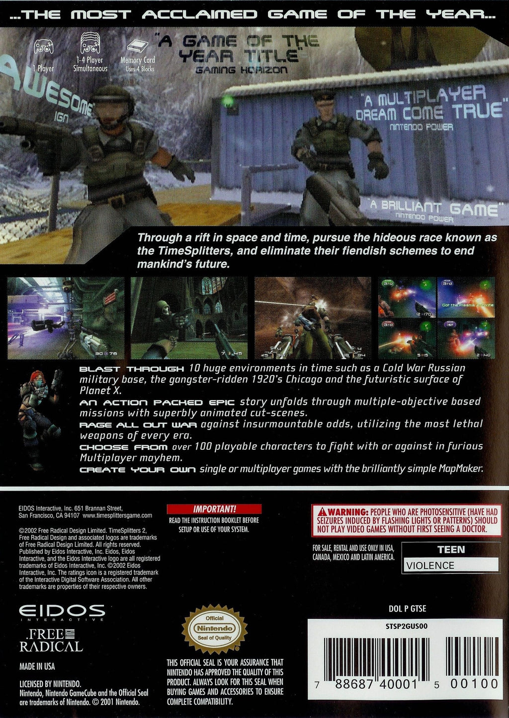 Experience the thrilling world of "TimeSplitters 2" on the Nintendo GameCube, where time travel and intense action combine to create an unparalleled gaming adventure. This critically acclaimed first-person shooter takes you on a journey through diverse eras, from the Wild West to futuristic space stations, each meticulously designed for maximum immersion. With its fast-paced gameplay and challenging missions, "TimeSplitters 2" offers endless replayability and excitement, making it a must-have for any GameCube enthusiast.